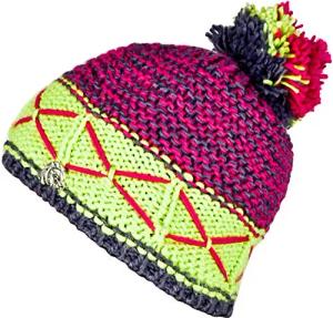 Wintermütze Mütze für Damen mit Bommel Strickmütze Bommelmütze Warme Classic Mützen Cap Mütze mit leichtem Fleecefutter Fuchsia-Gelb
