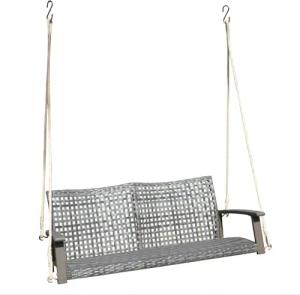Hängebank Grau 114cm Schaukel 2-Sitzer Bank Gartenbank Polyrattan inkl. Seil Baumschaukel