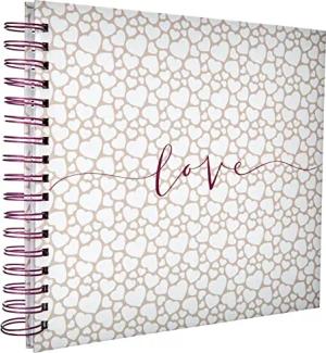 Fotoalbum Herz-Motiv 29x32 cm (Hochzeitsalbum mit 50 weißen Seiten Fotobuch für 250 Fotos im Format 10x15, Album zum Einkleben und Selbstgestalten) weiß/gold