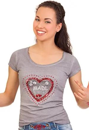 Trachten Shirt 1/2 Arm - Viana - grau, rosa, Größe XS