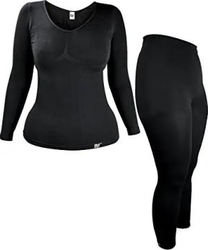 Damen Thermounterwäsche Thermoshirt Langarm für Winter | Extra Warm Innenfleece Lang Johns (L-XL, Schwarz)
