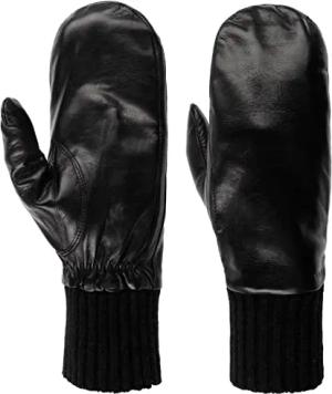 Tiril Fäustlinge Lederhandschuhe Faustlederhandschuhe Damen - mit Futter Herbst-Winter Winter - 7 HS schwarz