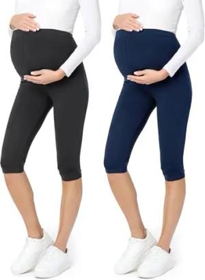 3/4 Umstandsleggings Kurz aus Baumwolle Bequeme und blickdichte Schwangerschaftsleggings 2Pack Umstandsmode BE20-229 (2Pack Schwarz/Marineblau, S)