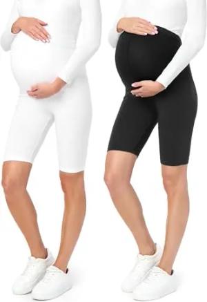 Damen Kurze Umstandsleggings 2er Pack Bequeme und Schwangerschaftsleggings aus Baumwolle Umstandshose Umstandsmode für Sommer BE20-228 (2Pack Schwarz/Weiß, M)