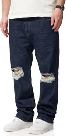 . Herren Jeans Tapered-Fit Jeanshose 100% Baumwolle Denim Baggy Hose Used Look Men's DC_JN-243-Indigo-W36