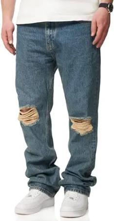 . Herren Jeans Ripped Loose-Fit Jeanshose 100% Baumwolle Denim Baggy Hose Straight-Leg Used Look Men's DC_JN-249-Light Blue-W32/L32
