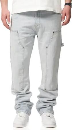 . Herren Jeans Straight-Fit Carpenter Jeanshose 100% Baumwolle Denim Hose Used Look Men's DC_JN-247-Ice Blue-W30