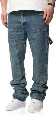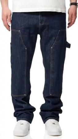 . Herren Jeans Straight-Fit Carpenter Jeanshose 100% Baumwolle Denim Hose Used Look Men's DC_JN-247-Indigo-W32