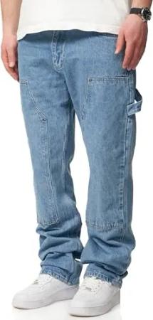 . Herren Jeans Straight-Fit Carpenter Jeanshose 100% Baumwolle Denim Hose Used Look Men's DC_JN-247-Light Blue-W32