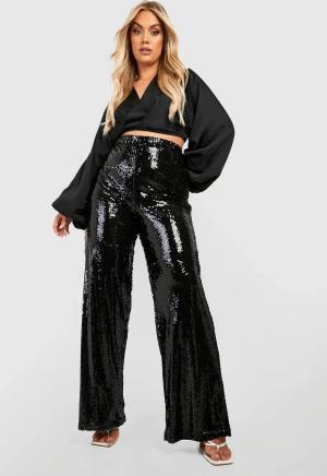 Plus Pailletten-Hose Mit Weitem Bein - Black - 48, Black