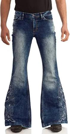 70er Used Washed Herren Schlagjeans mit Stickerei 30/34