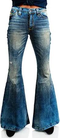 Damen Jeans Schlaghose 70er - Star Burn - Vintage Flared Jeans für Frauen (DE/NL/SE/PL, Bundweite & Schrittlänge, 46, 32, Dunkelblau)