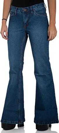 Damen Jeans Schlaghose 70er - Star Burn - Vintage Flared Jeans für Frauen (DE/NL/SE/PL, Bundweite & Schrittlänge, 48, 32, Dunkelblau)