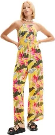 Damen Swim_Jumpsuit Tropical One Piece Swimsuit, Gelb, L EU