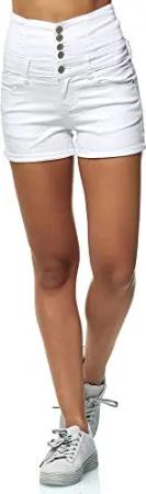 Damen Hose Kurz High Waist Push Up Effekt Chunkyrayan MS2021 White-36 (S)