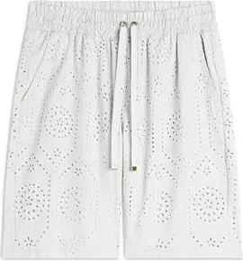 Damenhose aus Baumwoll-Musselin mit breitem Bein, bestickten Details und Saum mit Kordelzug, White Sand, S