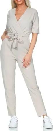 Damen Jumpsuit JDYHoney 7/8-langer Einteiler Overall kurzarm mit Gürtel 15287346 Chateau Gray S