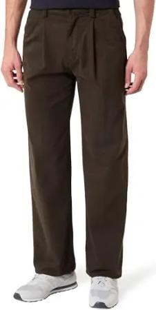 Men's Pleated Trouser Twill Dark Olive Pants, Green, 31W
