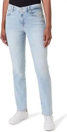 Damen Calie Straight Ankle Sunset Beach with Raw Cut Jeans, Light Blue, 31W EU