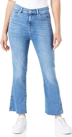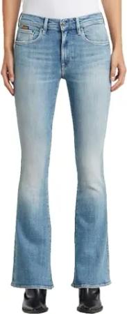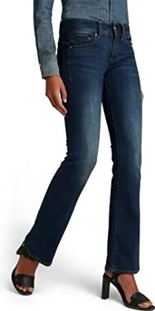 Damen Hose Ladies Organic Low Waist Flared Denim mid Indigo Washed 28