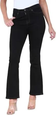 Damen Magic Shaping Slim Flare Leg Jeans Stretch Hohe Taille Damen Bootcut Denim Größe 38-52, Schwarz , 46
