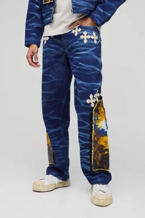 Pu Applique Baggy Jeans - Light Wash - 32R, Light Wash