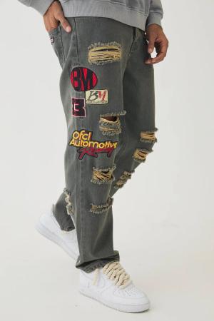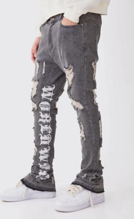 Slim Stacked Extreme Rip & Repair Washed Jeans - Antique Wash - 32R, Antique Wash