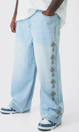 Plus Star Rhinestone Baggy Fit Jeans - Light Wash - 38, Light Wash