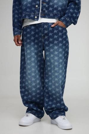 Lockere Jeans mit Monogram - Blau - 28R, Blau