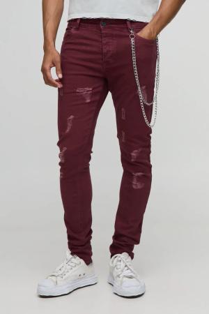 Skinny Jeans mit geteiltem Saum - Rot - 30R, Rot