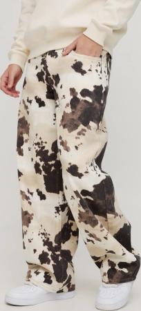 Lockere Jeans mit Kuh-Print - Braun - 30R, Braun