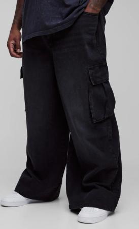 Plus Cargo-Jeans mit Bundfalte - Schwarz - 44, Schwarz