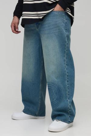 Plus lockere Jeans mit Kontrast-Waschung - mid wash - 38, mid wash