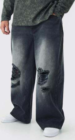 Plus lockere super zerrissene Jeans - Schwarz - 44, Schwarz