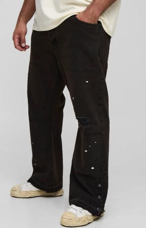 Plus zerrissene Slim-Fit Schlagjeans mit geteiltem Saum - Braun - 42, Braun