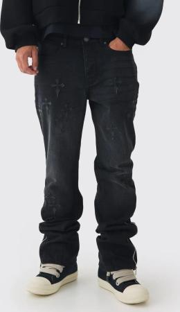 Slim-Fit Schlagjeans mit Kreuz-Applikation - Schwarz - 28R, Schwarz