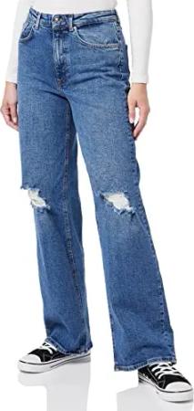 Damen Straight Leg Denim Jeans | High Waist Gerade Weite Schlag Hose | Wide Destroyed Pants ONLJUICY, Farben:Blau, Größe:28W / 32L, Z-Länge:L32