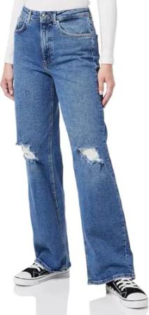Damen Straight Leg Denim Jeans | High Waist Gerade Weite Schlag Hose | Wide Destroyed Pants ONLJUICY, Farben:Blau, Größe:27W / 32L, Z-Länge:L32