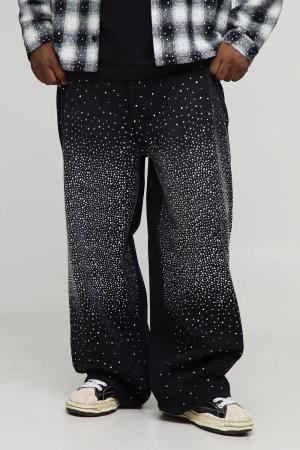 Plus lockere Jeans mit Strass - Schwarz - 38, Schwarz
