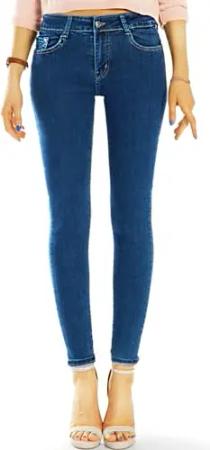 Damen Mid Waist Skinny-Fit Stretch Denim Jeans Basic RJ-1001 Dunkelblau 38