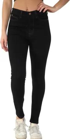 Damen-Jeans, Skinny-Jeans, Stretch, hohe Taille, Denim-Hose, Schwarz , 34