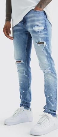 Gebleichte Skinny Stretch Jeans Mit Riss Am Knie - Ice Blue - 34R, Ice Blue