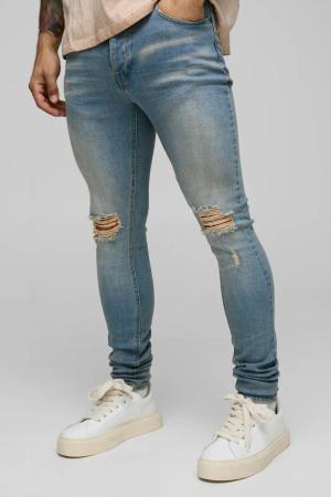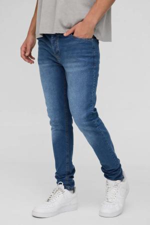 Super Skinny Stretch Washed Jeans - Mid Blue - 36R, Mid Blue