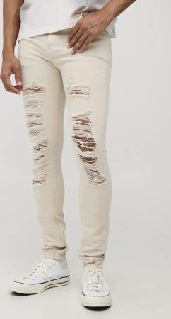 Skinny Stacked Rip & Repair Ecru Jeans - 32R, Ecru