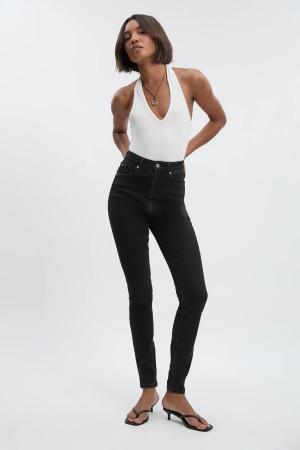 Skinny Jeans Mit 5-Taschen Und Hohem Bund - Black - 32, Black