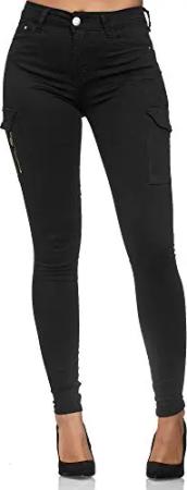 Damen Cargo Jeans Slim Fit Seiten Taschen Chunkyrayan MA2018 Black-44 (2XL)