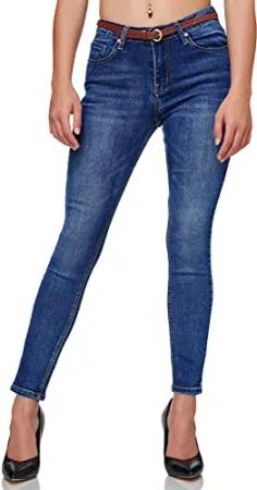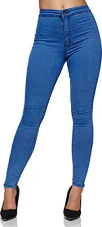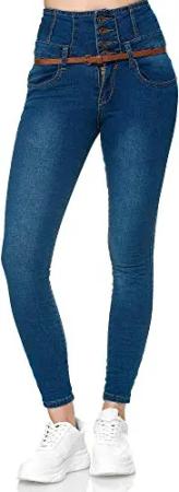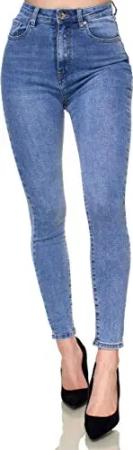 Damen High Waist Hose Skinny Jeans Chunkyrayan EL09D2 Blau-36 (S)