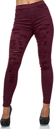 Damen Hose High Waist Destroyed Look Chunkyrayan A89-5 Bordeauxrot-36 (S)