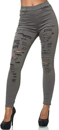 Damen Hose High Waist Destroyed Look Chunkyrayan A89-6 Grau-48 (4XL)