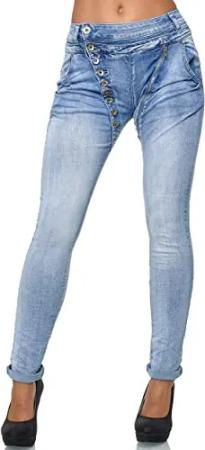 Damen Stretch Hose Skinny Fit Jegging H01-16 Blau 38 (M)